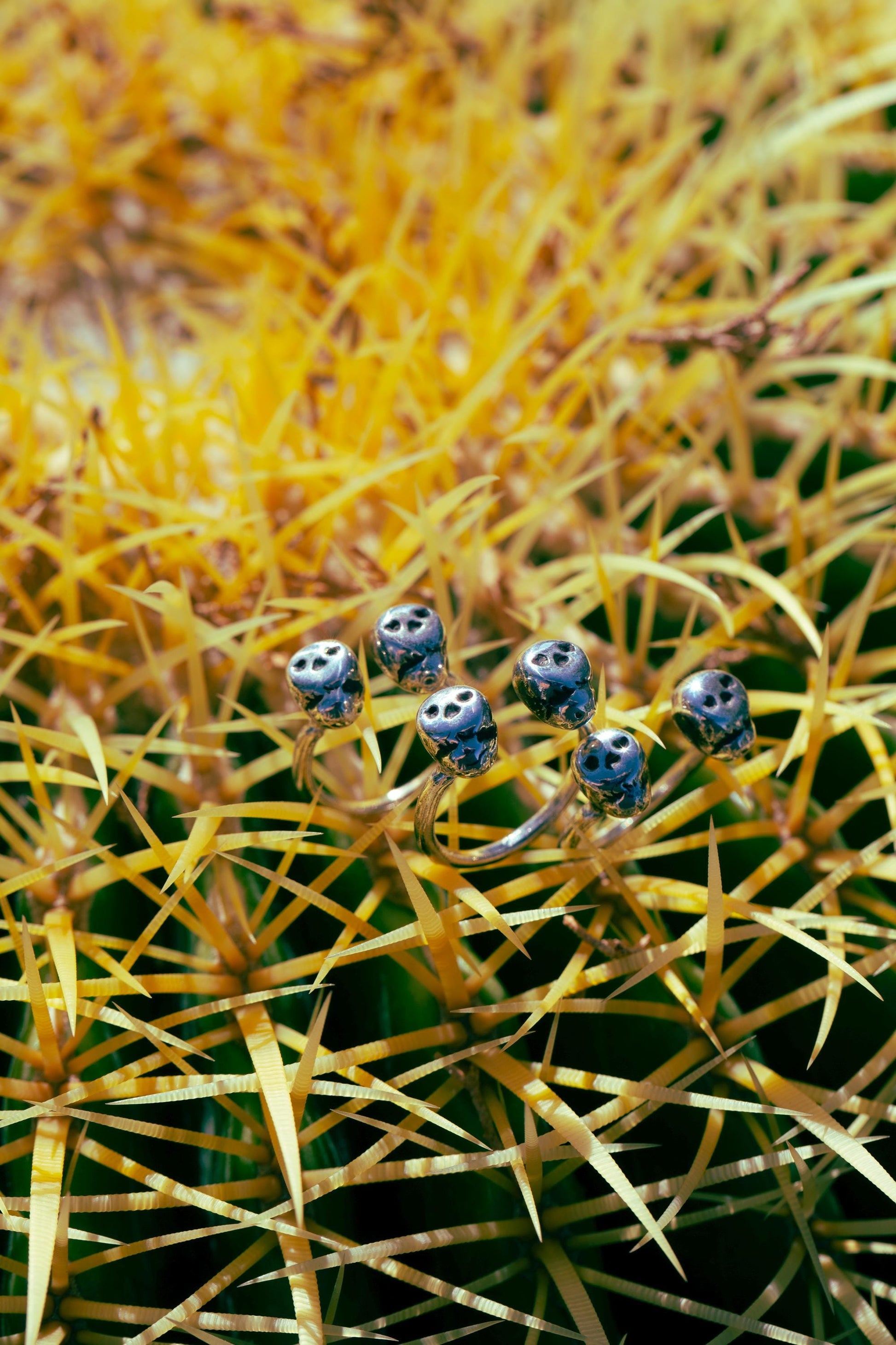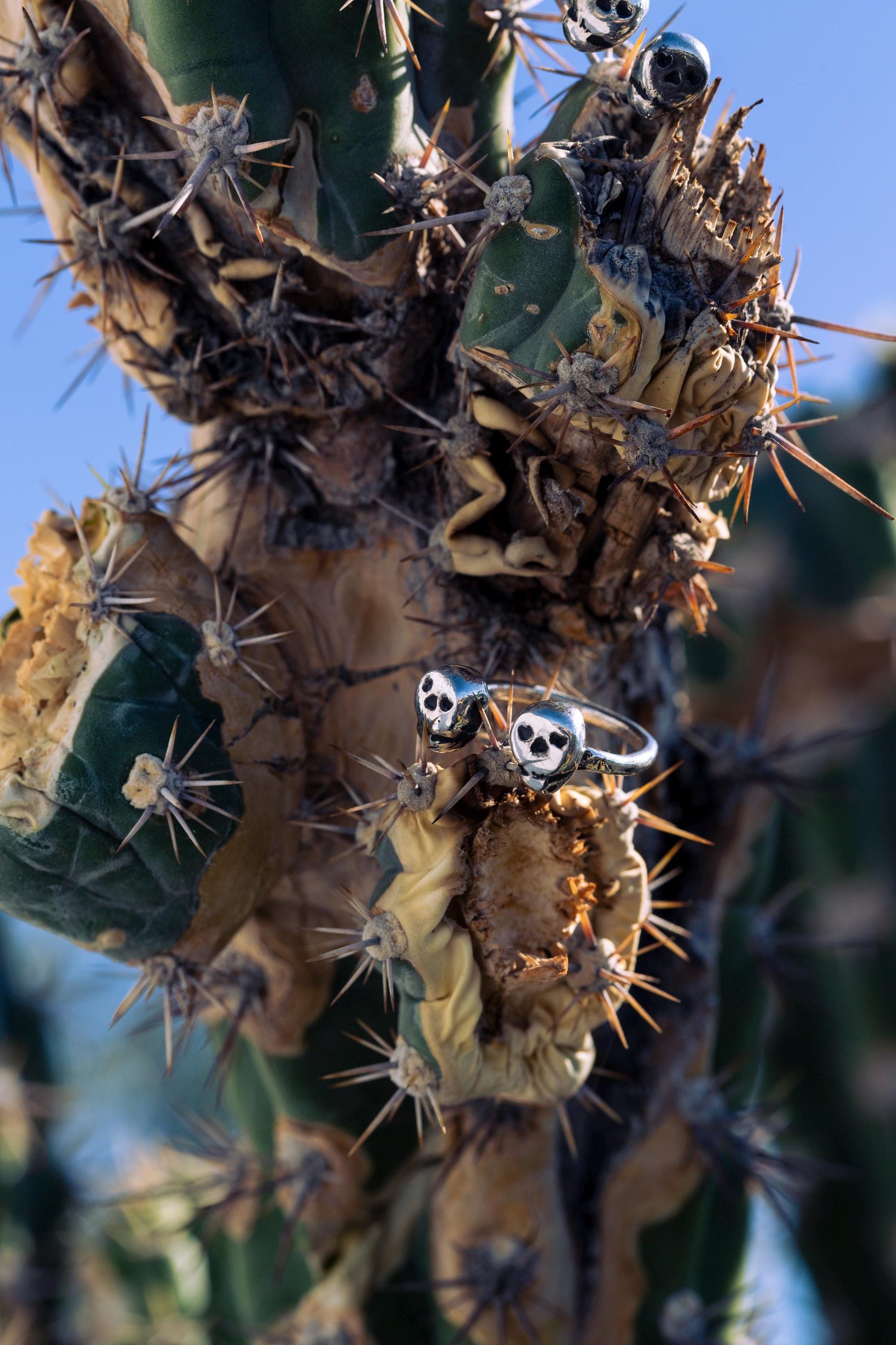 adjustable open ring with two small skulls with hearts as eyes